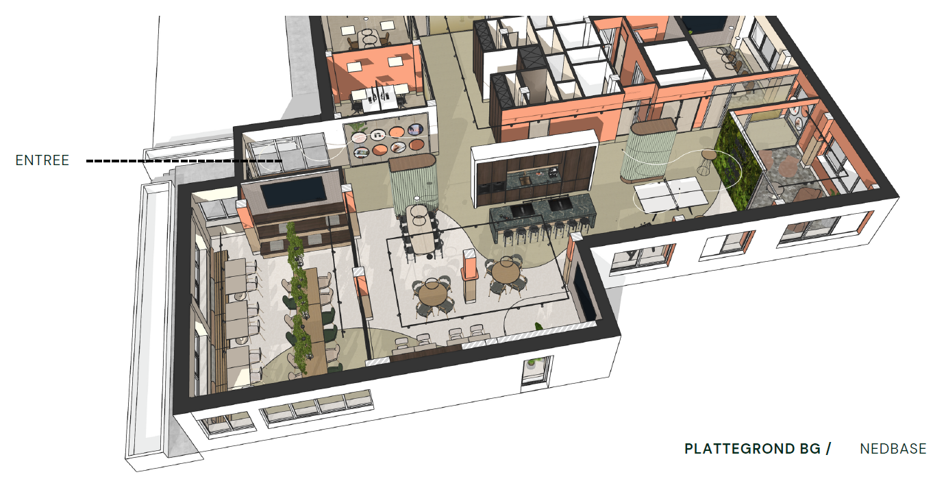 Het nieuwe kantoor weerspiegelt wie Nedbase nu is: zichtbaar, modern, energiek en professioneel. “Ook in het nieuwe pand willen we die warme, open sfeer behouden die Nedbase zo toegankelijk maakt. Het wordt een prettige en creatieve ontvangstplek voor onze klanten,” vertelt Jacco.